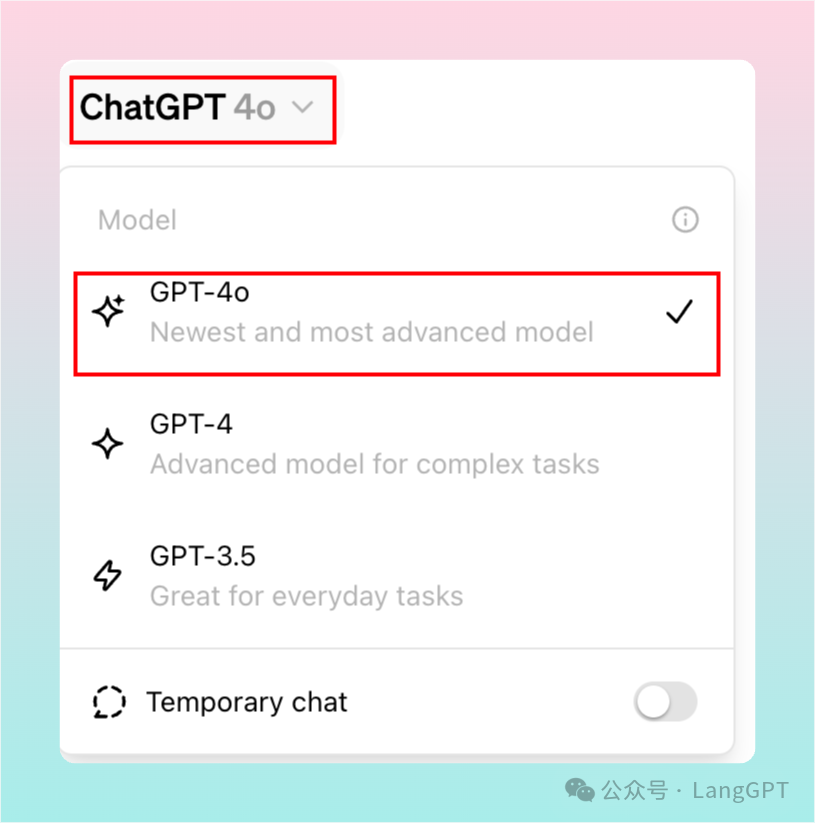 对于免费用户,GPT-4o也在逐步开放使用中,大家可以保持关注,随时准备迎接这款超级AI的到来!LangGPT 社群的已经有许多小伙伴获得了免费使用资格。点开模型选项时能够看到 GPT-4o 模型即可。
