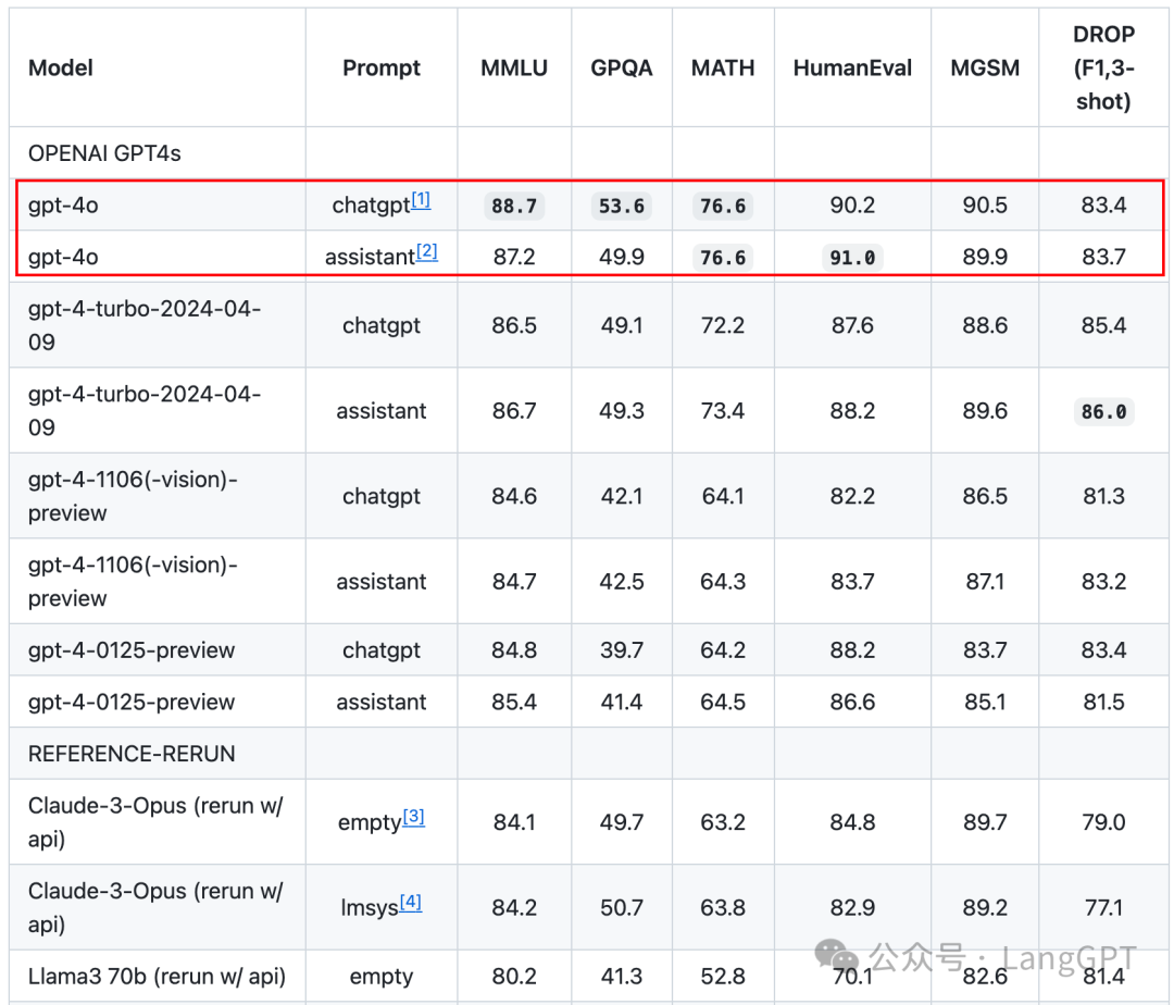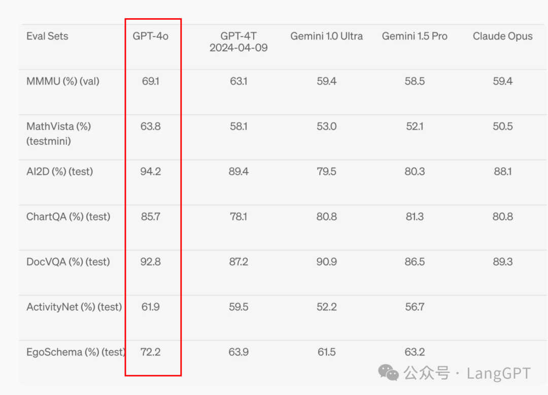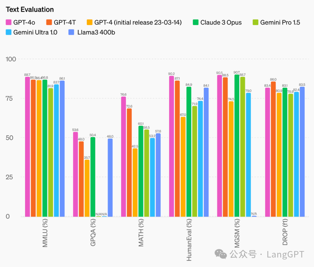 相比Claude和LLaMA,GPT-4o在各项指标上遥遥领先。无论是处理速度、生成质量,还是对多模态输入的理解能力,GPT-4o都展现出了超凡的实力。尤其在传统基准测试中,GPT-4o在文本处理、推理和编程方面达到了GPT-4 Turbo的性能水平,同时在多语言、音频和视觉能力上设立了新的性能基准。