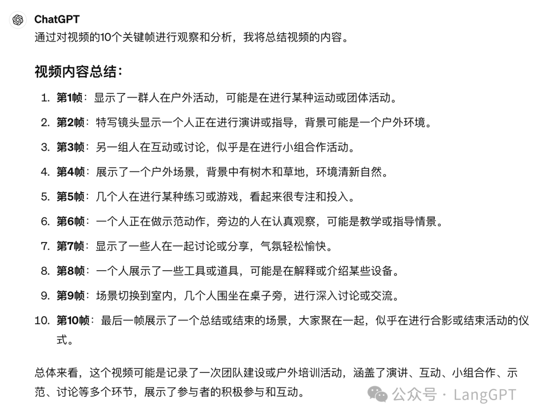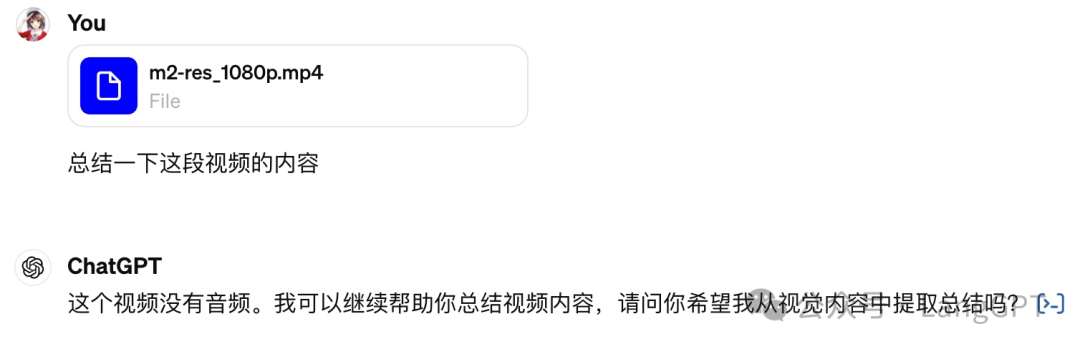 让 GPT 总结视频内容,发现 GPT 主要靠音频实现总结,当我希望他从视觉内容中提取总结时,ChatGPT 的做法是提取图片,然后总结图片内容。