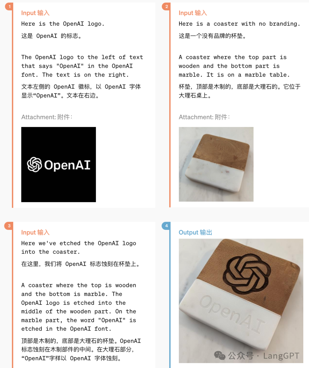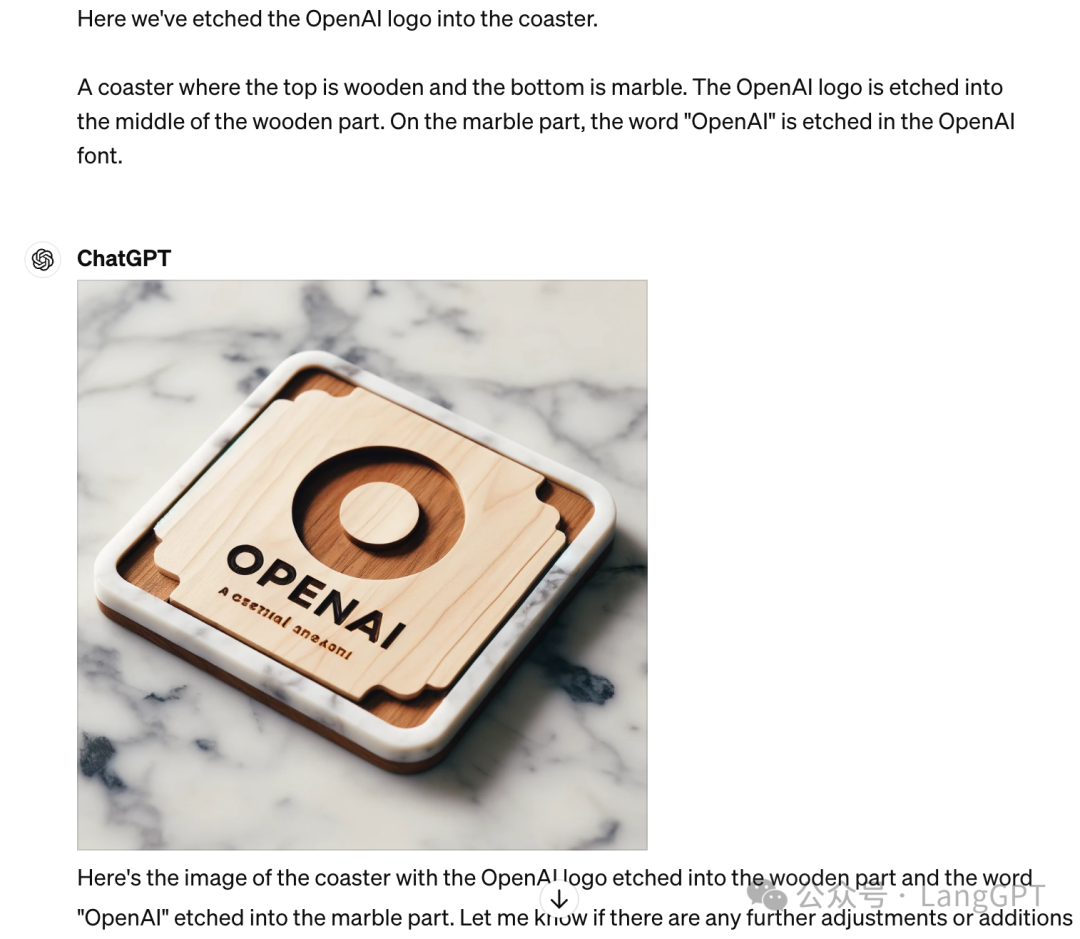 这是 OpenAI 官方提供的一个例子,将 OpenAI 的品牌标志打印到杯垫上,对于制作品牌周边来说应该很有趣。官方的演示效果很好,但是我们实际使用下来和演示效果差距较大。