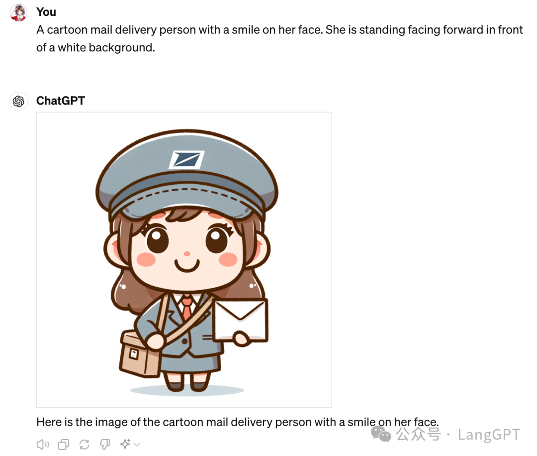 提示词:一个面带微笑的卡通邮递员。她面朝前站在白色背景前。