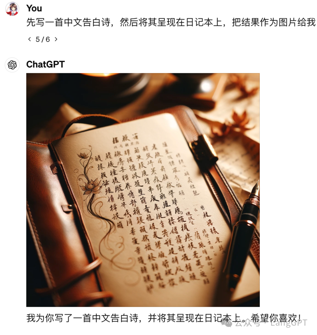 众所周知 GPT 的中文能力相比英文能力差距较大,对国内用户来说,中文能力更重要,测试下来发现 GPT 的中文能力和 DALLE-3 类似,在中文上欠缺还是比较大的。