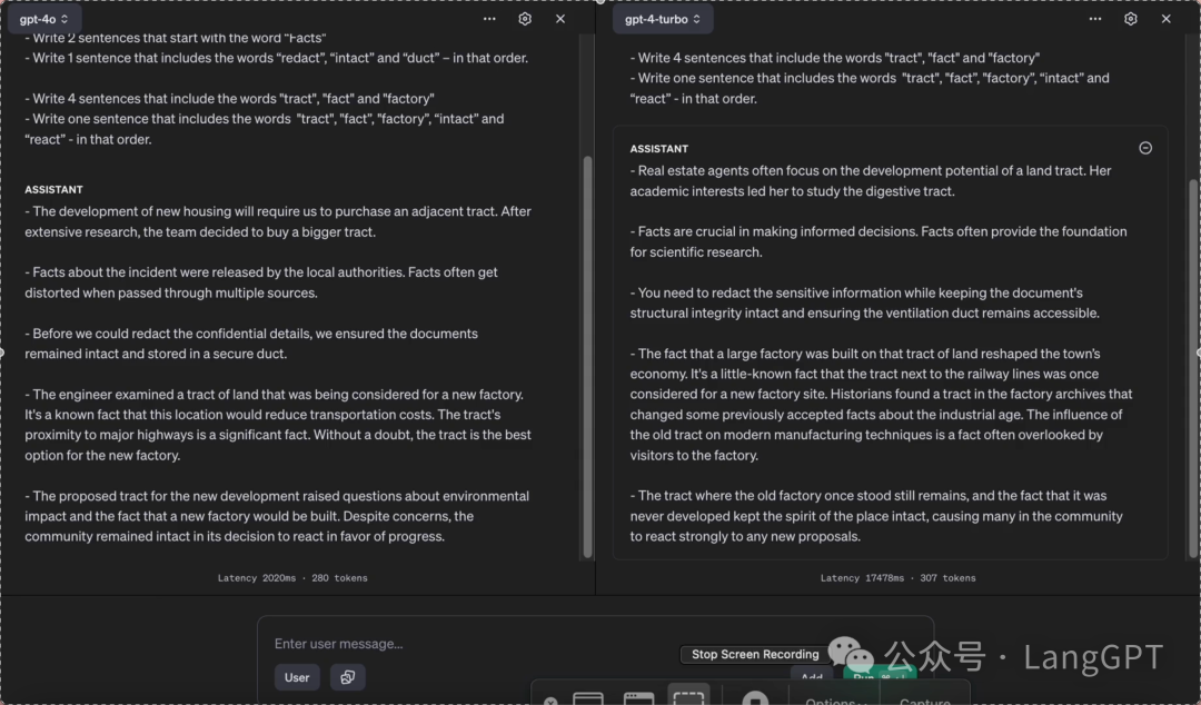 为了测试其视频理解能力,我上传了如下的一段视频(视频内容是对 gpt-4o 和 gpt-4 进行速度对比。)