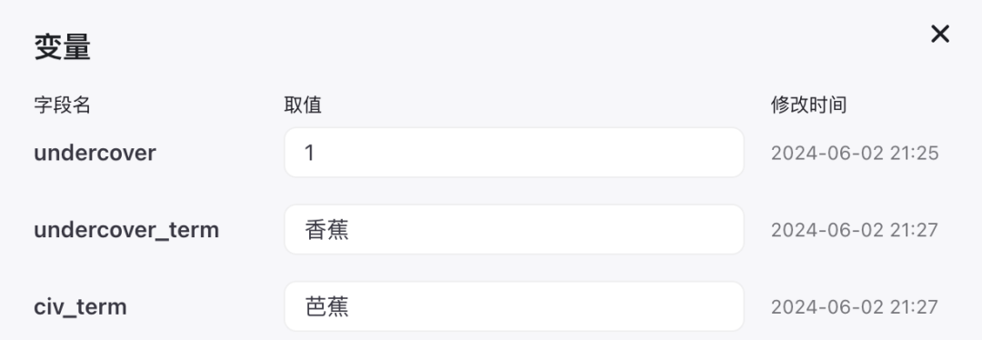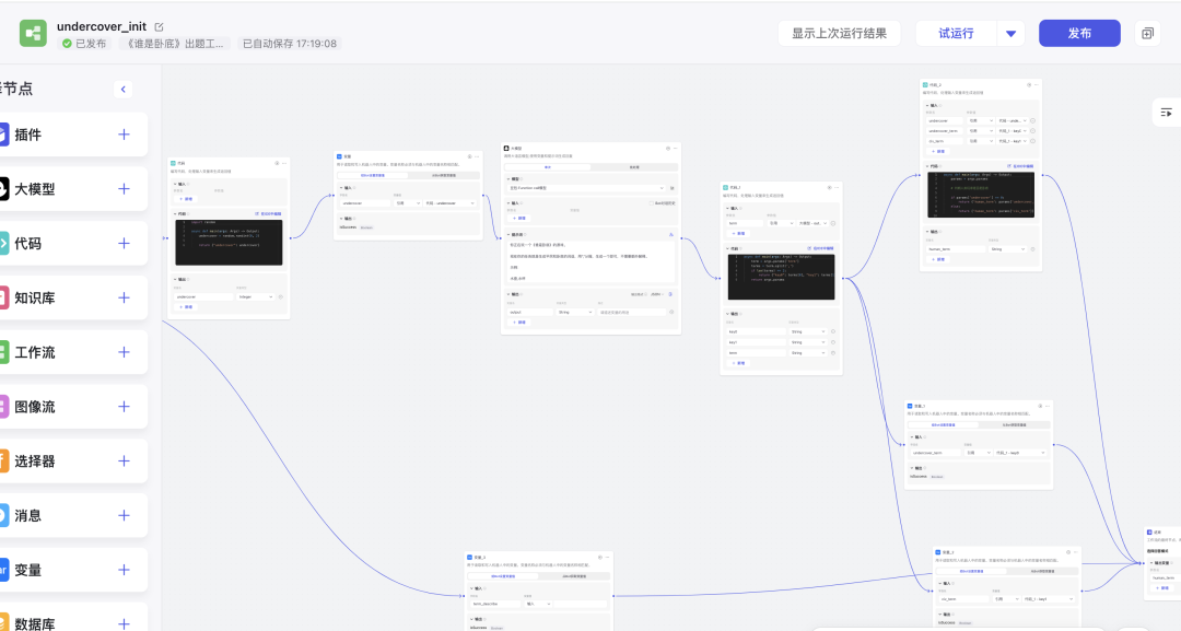 • 变量节点:将卧底编号、词语存储到变量中,以便后面Agent读取