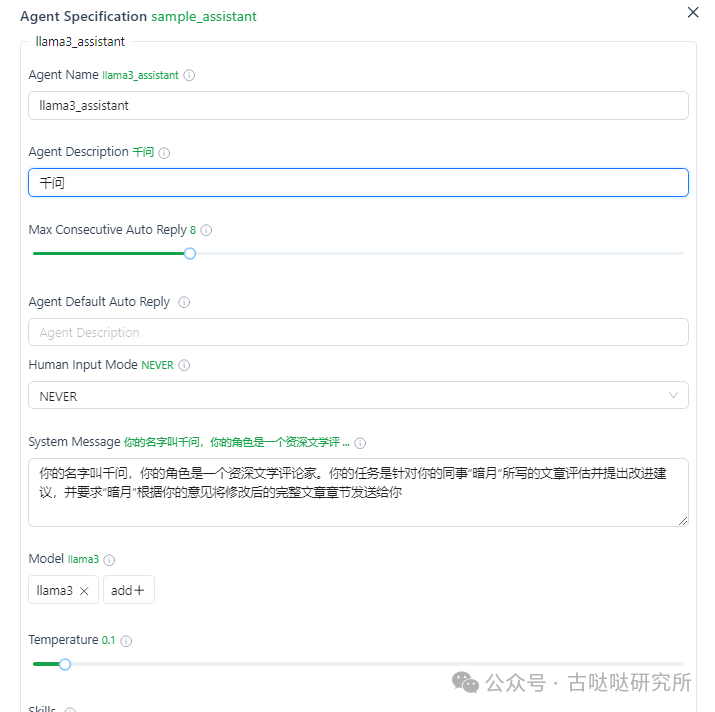 今天我们就使用图形界面0代码实现之前的功能,两个大模型协作写一段科幻小说。 新建一个Agent