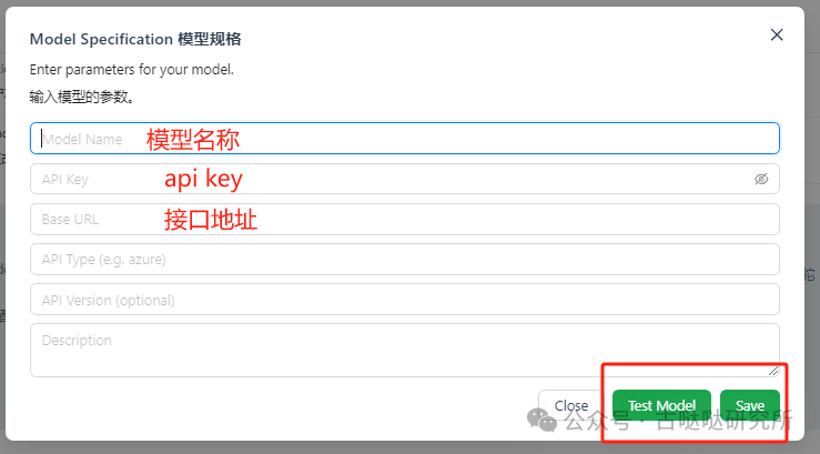 填写参数,然后点击Test Model测试是否正常连接,然后保存。 我这里添加了两个ollama的本地模型phi3和llama3 这一步添加模型就替代了之前写代码设置大模型