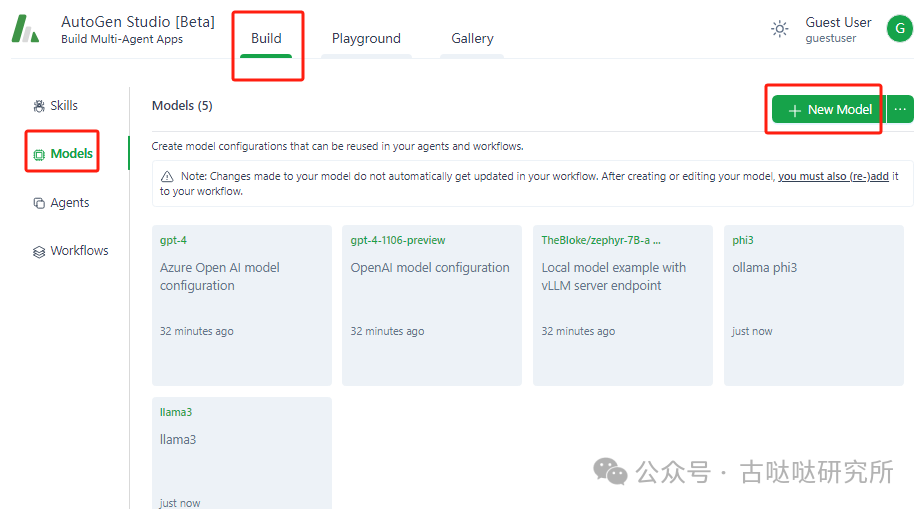 前一阵子写了一篇关于如何调用多个大模型协作完成工作流,链接: 挑战GPT4??Kimi+Qwen多模型协作Agent 当时介绍的是命令行版本的AutoGen,虽然也是能很方便快捷的构建一个流程,但对大部分没有编程基础的小伙伴不太友好。 恰巧昨天又有几个小兄弟聊了起来能不能推荐一个不用写代码的多智能体应用框架,马上想到了今天主角AutoGen Studio