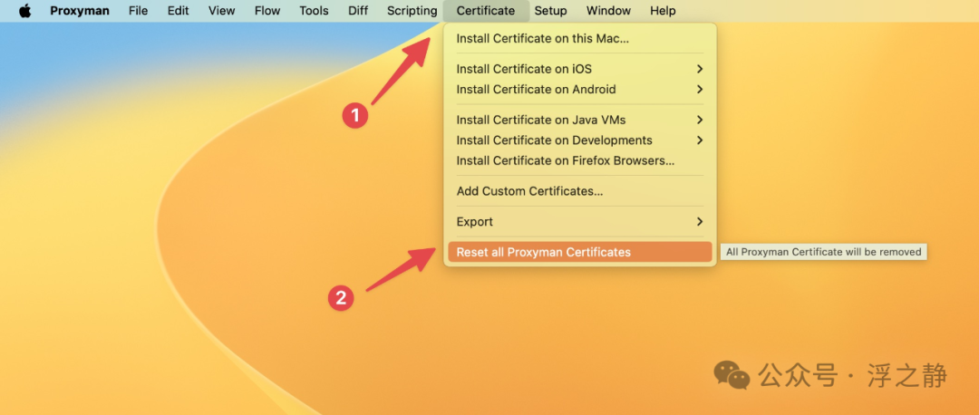 如果你想删除证书,只需打开 Proxyman 工具菜单 → 重置所有证书 → 完成