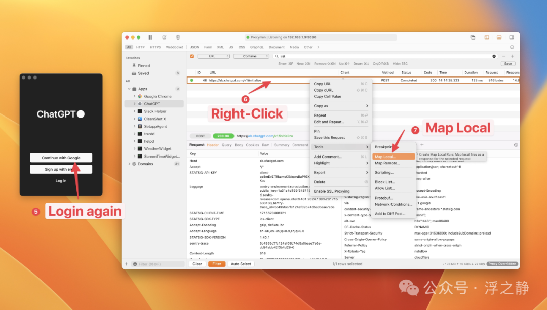 3. 在 Proxyman 中,选择 Apps 文件夹中的 ChatGPT