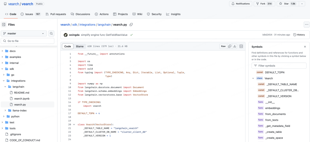 这个版本比最新开源的SDK版本略旧,只支持固定字段,但是最新的开源版本已经兼容多字典。跟Vearch的同学讨论后,决定还是直接导入Github上开源的最新SDK,将下面这个文件内容复制到项目工程目录下就行。