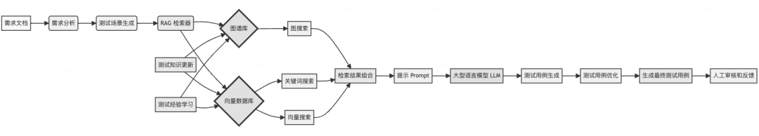 大模型火热了这么久,我们也在积极研究如何应用到测试上,并给测试提效。结合我们营销中心、策略等系统繁杂业务的特性,希望有一种可以一键输出测试用例的能力,这样可以帮助我们节省用例编写的时间。而这之前,我们先需要完成知识库(业务知识、测试经验、系统上下)的建立,包括知识文档的整理、知识的录入与检索,知识图谱的创建等等。有了RGA,我们就可以根据知识库以及给定的需求文档,进行测试用例生成。