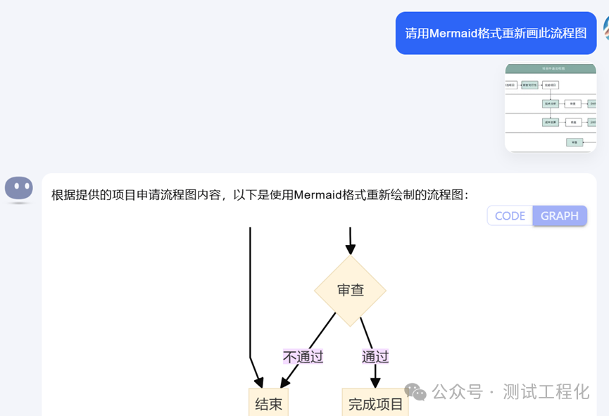 想到,Kimi 不是可以文生流程图吗,见Kimi AI助你秒速完成流程图设计,还可以直接对话,让它修改流程图,Kimi AI文生流程图高级玩法:无需移步其他工具,就让Kimi当场出图的方法。从中,说明Kimi除了能理解人类的自然语言,也是懂流程图的逻辑的,要是能直接识图,并用Mermaid格式生图,不就可以解决我的问题了吗。