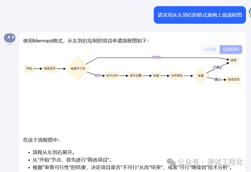 Kimi,果真把我的原图重画出来了,真神啊! 由于,竖型流程不好查看,于是要求它按从左到右的横向方式重新输出,交互如下: