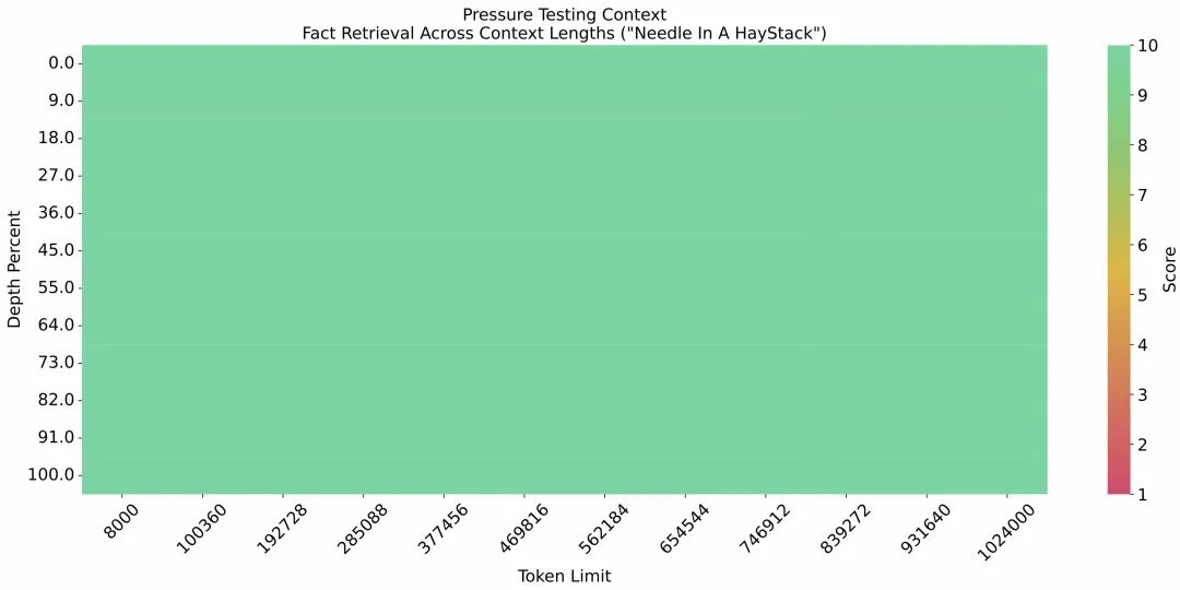 在 1M 的上下文长度下进行著名的“大海捞针”实验,100%。