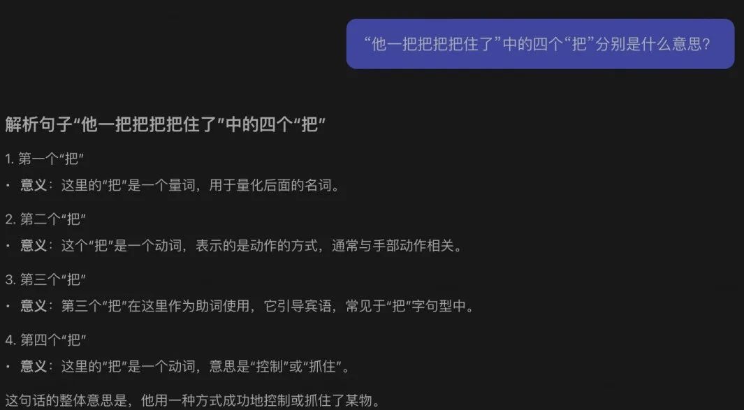 “他一把把把把住了”中的四个“把”分别是什么意思?