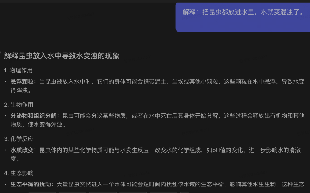 解释:把昆虫都放进水里,水就变混浊了。