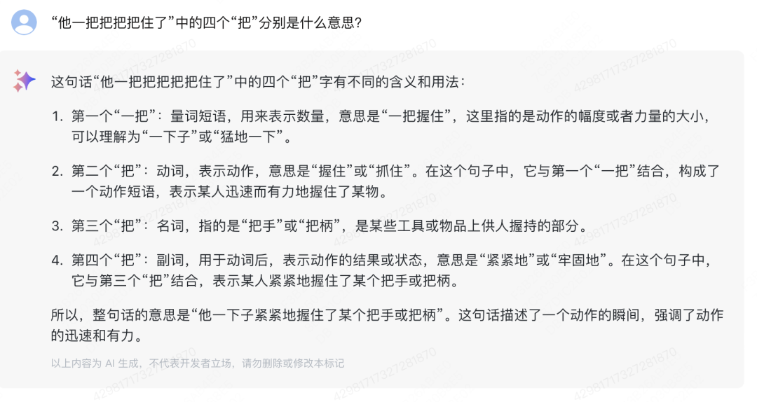 博大精深的中文,果然把GPT4绕坑里了,第三个把应该是名词,就是车把的意思。这一道测试题,GLM4-9b完胜。