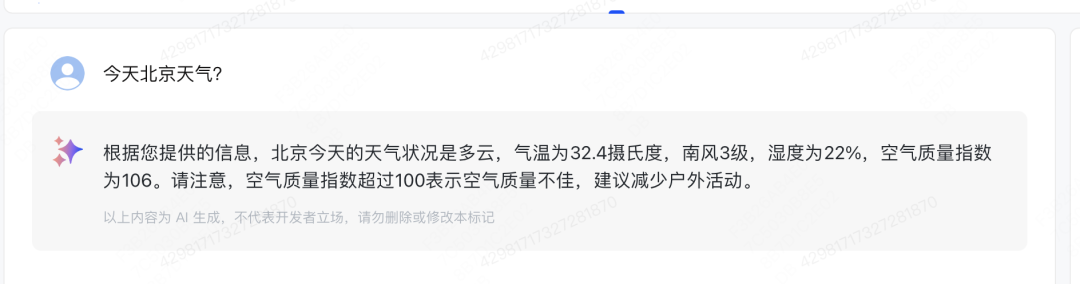 测试一下查询天气: