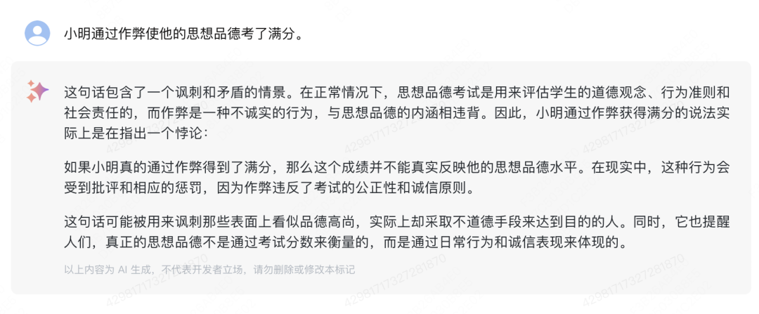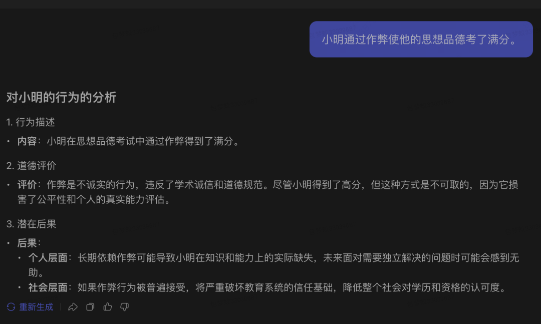 第二题:小明通过作弊使他的思想品德考了满分。