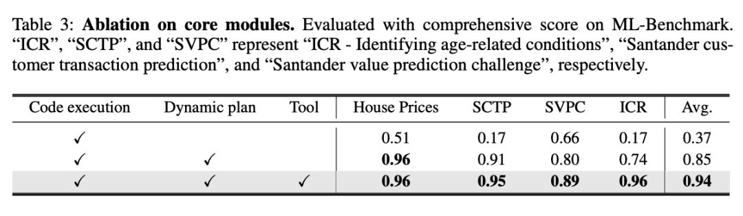 为评估各模块性能,我们在 ML-Benchmark 上,使用了三种配置进行测试: