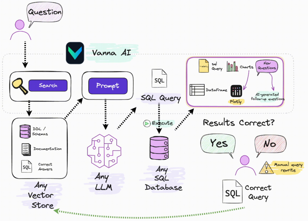 ingFang SC", Cambria, Cochin, Georgia, Times, "Times New Roman", serif;">Vanna 是一个开源的 Python RAG(检索增强生成)框架,用于 SQL 生成和其他相关功能。它使用大型语言模型(LLM)来实现准确的文本到 SQL 生成。  ingFang SC", Cambria, Cochin, Georgia, Times, "Times New Roman", serif;">Vanna 的工作原理:ingFang SC", Cambria, Cochin, Georgia, Times, "Times New Roman", serif;">1.在你的数据上训练一个 RAG “模型”。2.提出问题,Vanna 会返回 SQL 查询,这些查询可以被设置为自动运行在你的数据库上。ingFang SC", Cambria, Cochin, Georgia, Times, "Times New Roman", serif;">用户界面:ingFang SC", Cambria, Cochin, Georgia, Times, "Times New Roman", serif;">Vanna 提供了多种用户界面,例如 Jupyter Notebook、Streamlit、Flask 和 Slack,方便你使用。ingFang SC", Cambria, Cochin, Georgia, Times, "Times New Roman", serif;">安装:ingFang SC", Cambria, Cochin, Georgia, Times, "Times New Roman", serif;">使用示例:from vanna.openai.openai_chat import OpenAI_Chatfrom vanna.chromadb.chromadb_vector import ChromaDB_VectorStore