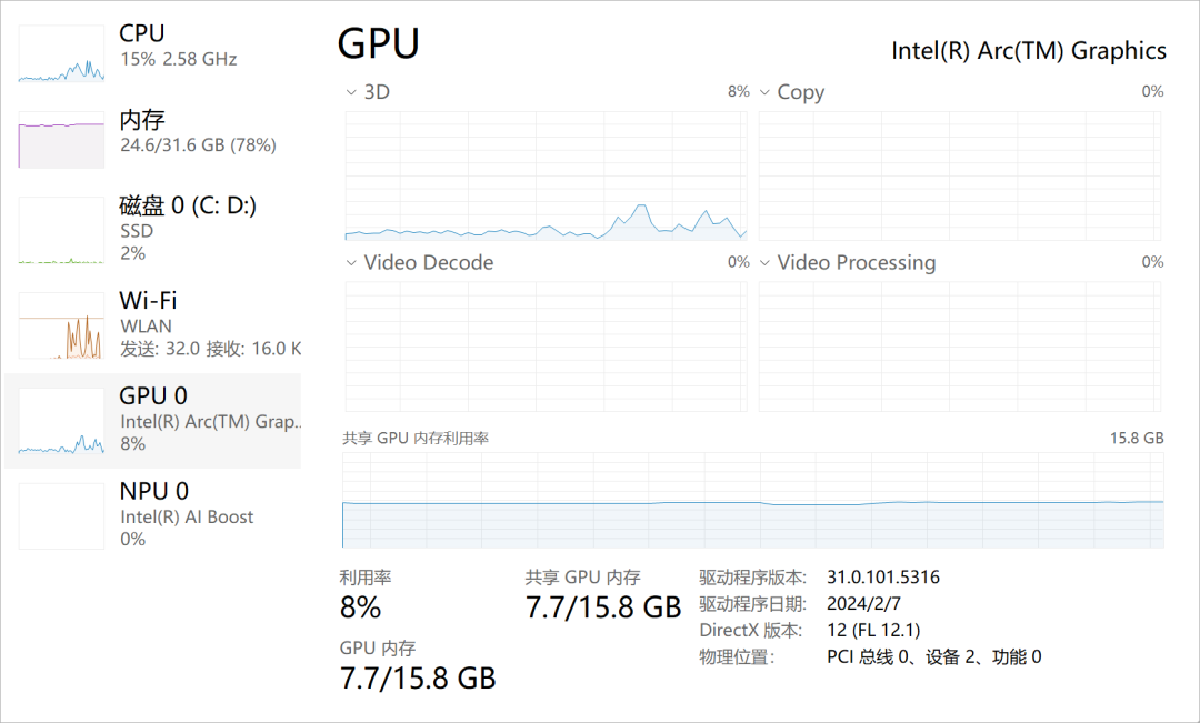 先看Ultra9直接跑本地大模型的效果。我直接把我的4060显卡给禁用了。