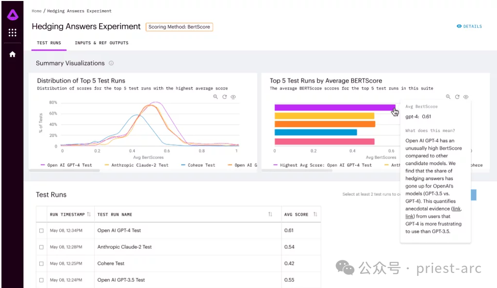 3、测试超参数:Arthur Bench 可以用于测试不同超参数对 LLM 性能的影响。超参数是控制 LLM 行为的设置。