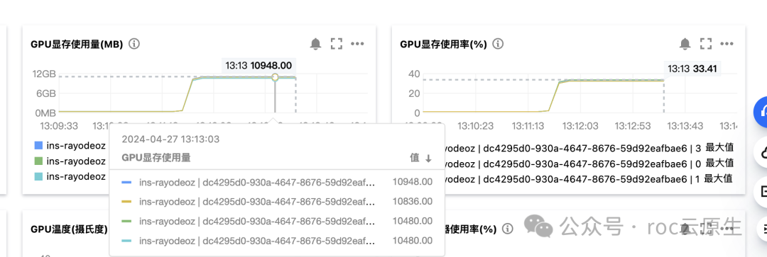 这样,在模型跑起来的时候,几张 GPU 算卡可以均摊显存,而不至于跑满: