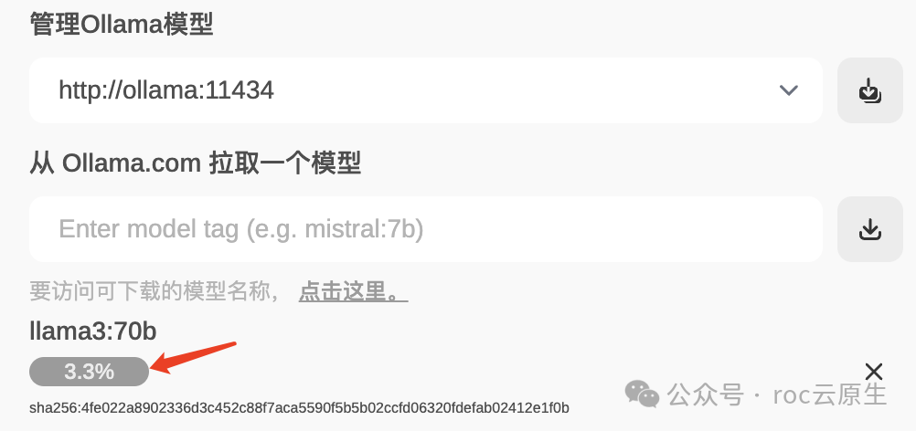 执行 ollama pull 下载需要的模型,这里以下载 70b 模型为例: