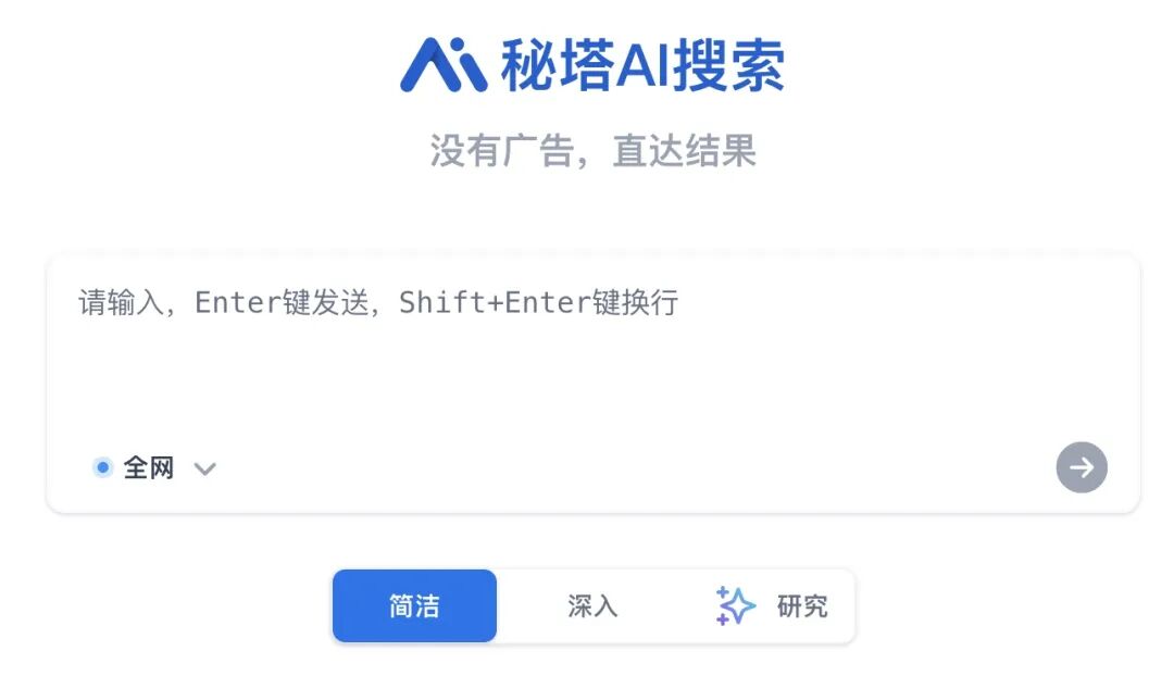 秘塔科技推出的一款AI搜索引擎,也是比较早就入局AI搜索领域的一个玩家了。秘塔AI搜索的主界面干净简洁,并且也是无需注册登录就能直接进行搜索的,这一点体验很不错。
