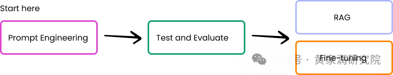 理论上来说,从提示工程开始来学习是最好的选择,它能够帮助你识别遇到的局限性,并确定可以使用的其他解决方案。
