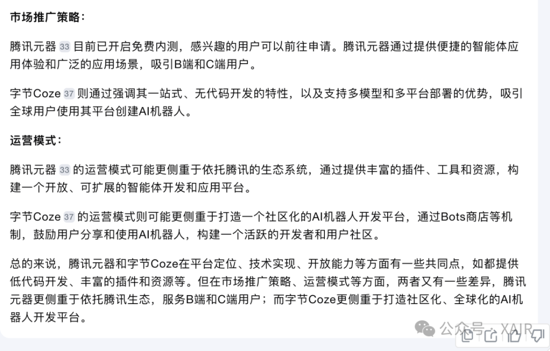 字节扣子和腾讯元器都是平台,在开发者运营上可能存在抢夺,对于开发者是利好。
