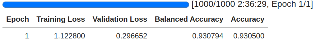 • 我们可以看到模型的训练损失为 1.12,验证损失为 0.29