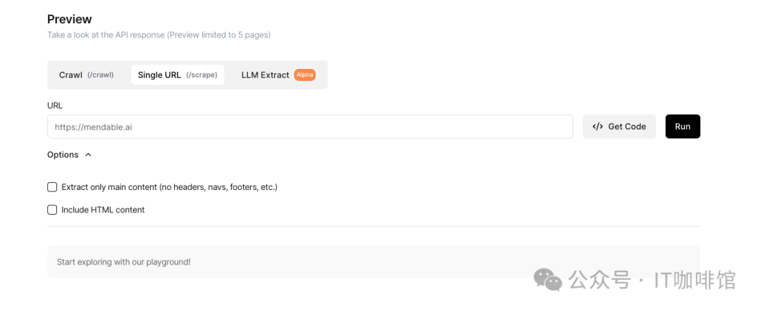 可以先通过FireCrawl 提供的playground来快速体验下。