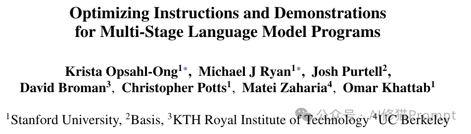 近日,DSPy的研究团队联合其它几家机构的研究者,发布了一项LM程序中Prompt优化的最大规模的联合研究《优化多阶段语言模型程序的说明和演示》(arXiv:2406.11695v1),DSPy的研究团队基于prompt优化用六个解决方案解决了两个难题,提出五条优化时的教训。这对于LM程序开发者具有非常重要的指导意义,接下来,让我们一起看看研究者是如何深入剖析DSPy的核心思想和关键技术的以,文末我抛砖引玉谈了些这项技术对NLP发展的一些影响。