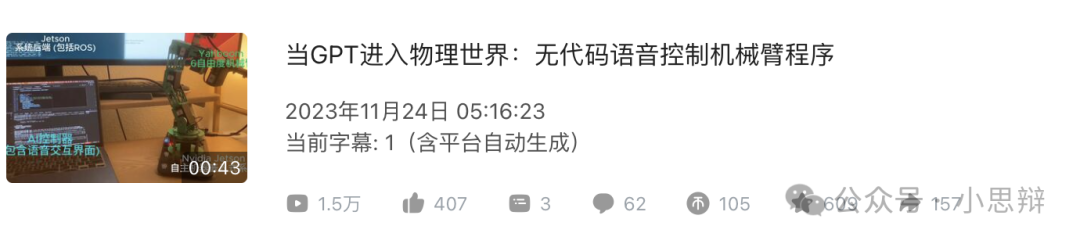去年末,我创建了一个集成了智能代理Agent的机械臂演示程序(详情见《当AI进入物理世界:让你用嘴而不是用程序操作机械臂》),并将这段简单的演示视频分享到了B站。它的火速流行超出了我的预期——那短短的几十秒视频竟吸引了成千上万的观看次数,不少观众通过私信表达了他们对开源代码的期待。