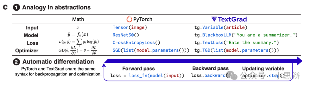 我们如何实现更细粒度的优化呢?这正是TextGrad所要解决的问题。TextGrad展示了如何将深度学习中的微分优化应用到提示优化中。TextGrad(论文题目《TextGrad: Automatic "Differentiation" via Text》,详情见:https://arxiv.org/pdf/2406.07496)的工作方式让我想起了熟悉的PyTorch微分优化系统。