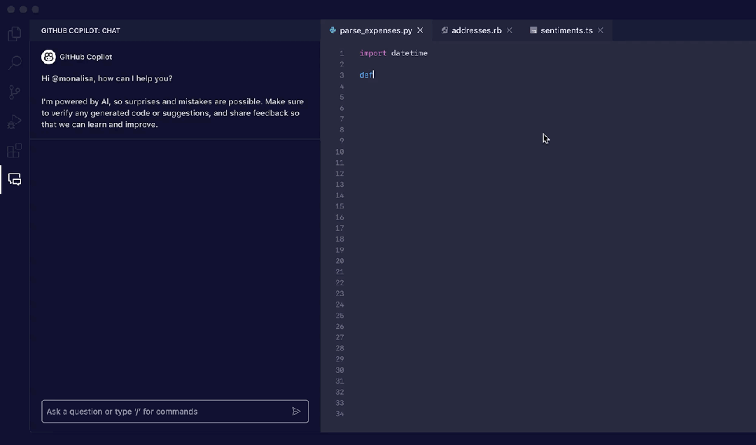 ingFang SC", "Hiragino Sans GB", "Microsoft YaHei UI", "Microsoft YaHei", Arial, sans-serif;font-size: var(--articleFontsize);letter-spacing: 0.034em;line-height: 25.6px;min-height: 1em;">3. 产品案例以下丰富的案例都是我在 YC(美国最大天使投资机构)项目中找到的,不得不说,在 AI 应用萌发的初期,YC 项目中的 idea 真的是非常鲜活,有新意。YC 项目已经成为为经常反复浏览的灵感源库(我已经整理出来放在飞书表格里, 关注公众号回复“YC2024” 可得)。Github copilot 是非常好的案例。Copilot 出现在左侧,与用户呈现出 1v1 结对编程的场景化,ta不需要用户刻意唤起,或者时常提醒,对用户造成打扰。