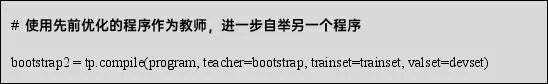 此外,本文可以在DSPy中嵌套自举过程。具体来说,本文可以使用优化后的自举程序本身来进一步引导另一个程序。这在原始零样本程序表现相对较差时强相关。
