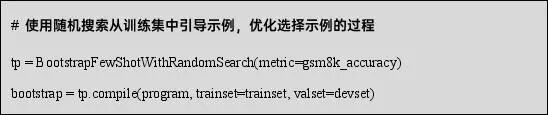 这个过程会为训练集中的例子生成示例链,并优化选择这些示例的过程,使用随机搜索,将选择示例视为一个需要优化的参数。