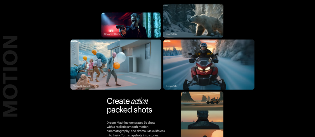 想要亲自体验Dream Machine的魅力?直接访问Lumalabs.ai的官网注册,即刻开始创作:https://lumalabs.ai/dream-machine/creations。它支持文本到视频和图像到视频的转换功能。更多详情,可以查看我们的推特介绍:https://x.com/LumaLabsAI。