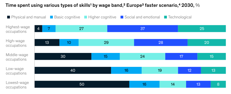 麦肯锡认为在2030年,社会和情感技能在欧洲的需求将增加11%,在美国将增加14%。
