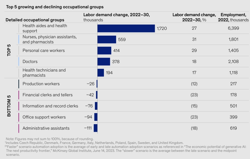 这一激增主要是健康助手和医疗保健专业人员的需求不断增长,但由于自动化和人工智能,对办公室支持岗位的需求将下降。