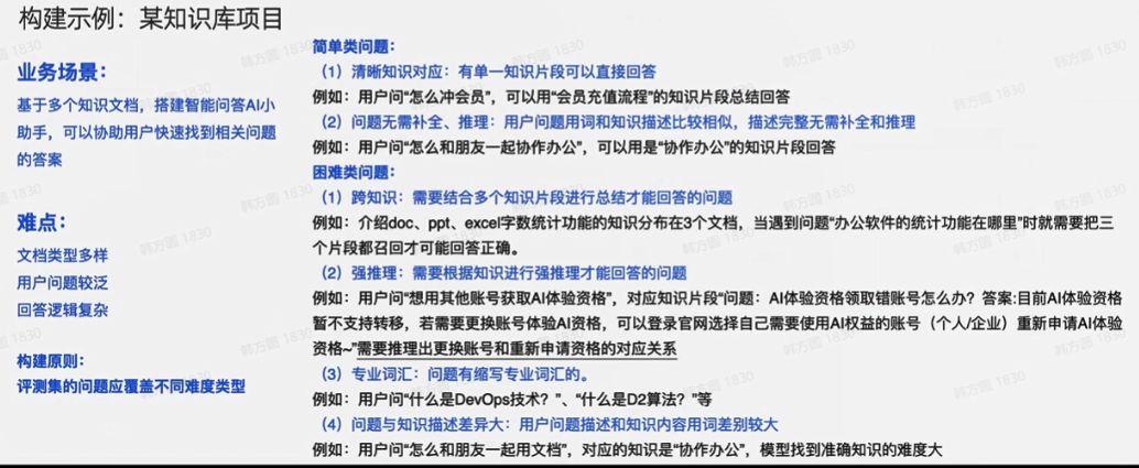 2. 评测集分布:与真实问题分布一致,线上抽样、按照维度构造