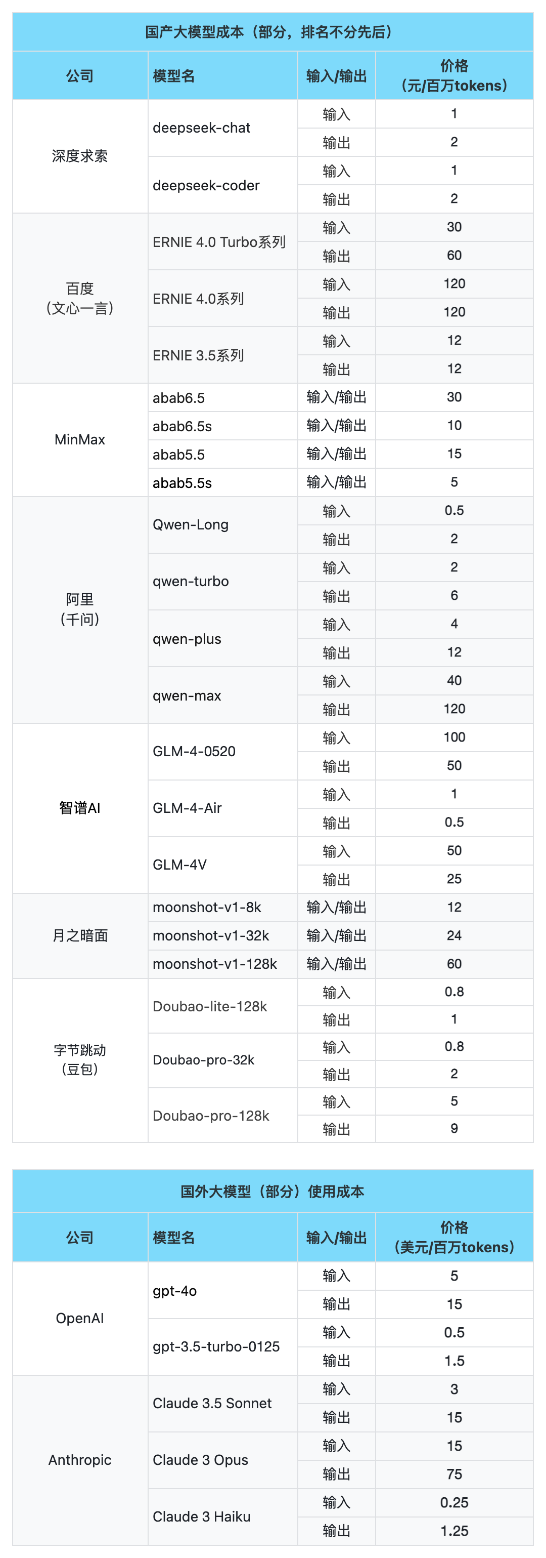 月之暗面:https://platform.moonshot.cn/docs/price/chat#%E4%BA%A7%E5%93%81%E5%AE%9A%E4%BB%B7