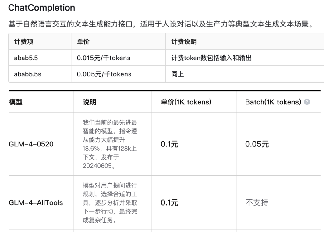 智谱AI:https://maas.aminer.cn/pricing