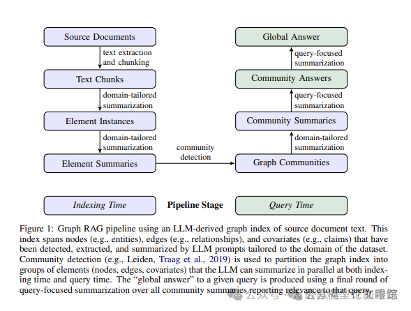 社区检测: 利用图算法(例如,层次化 Leiden 技术)对知识图谱进行社区检测,将具有相似语义的实体聚集在一起,形成不同的社区。 社区概括: 为每个社区生成一个概括性的描述,用于概括该社区的主题和关键信息。