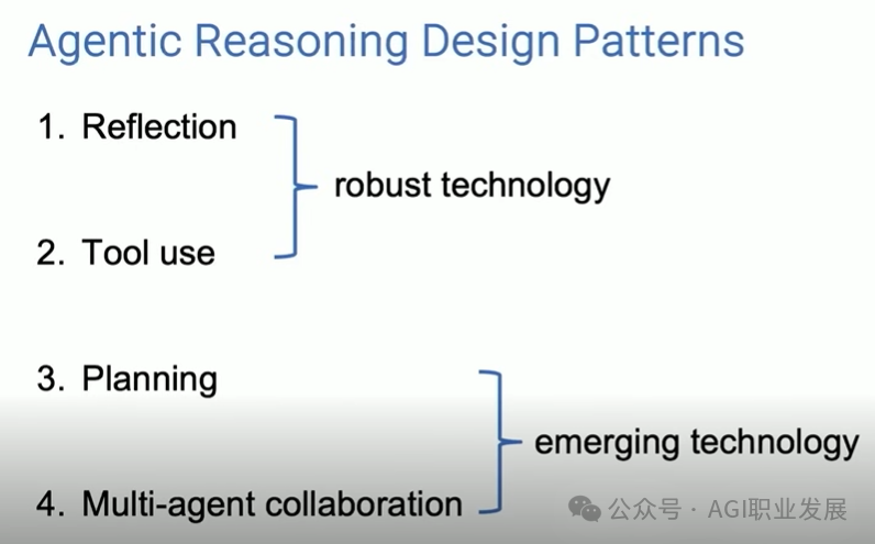 Andrew Ng总结了智能体中几种主要的设计模式: