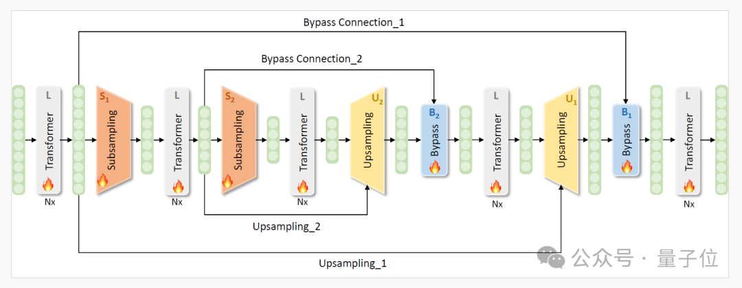 同时,旁路模块通过结合子采样前后的序列,进一步提高了模型的收敛速度。这种设计不仅显著减少了计算成本,还保持了输入序列的语义完整性。