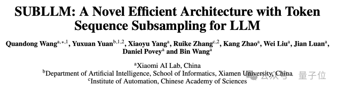 小米大模型团队提出SUBLLM(Subsampling-Upsampling-Bypass Large Language Model),国际AI语音大牛、开源语音识别工具Kaldi之父Daniel Povey也参与指导。
